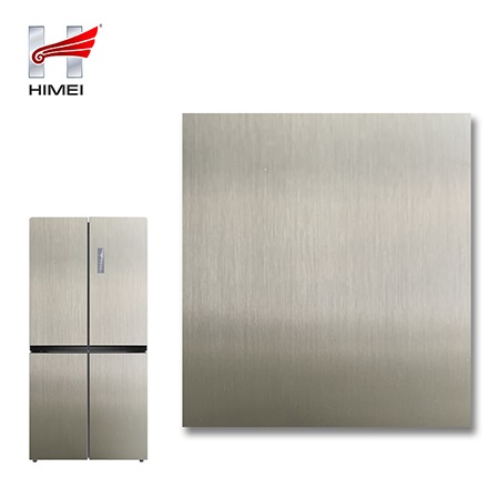 家電用覆膜鋼板,就是鋼板的基材上面覆了一層PET膜/PVC膜,然后通過(guò)覆合貼覆而成,主要應(yīng)用在各類家電外殼裝飾上,例如冰箱、洗衣機(jī)、電飯煲等外殼部件。覆膜是一種物理工藝,一層膜一層鋼板經(jīng)過(guò)高溫高壓壓合而成。