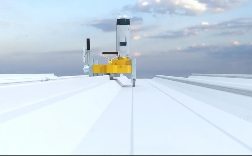 820融合瓦與470融合瓦一樣,先手工夾具180° 預鎖,再用專用鎖邊機360° 直立鎖邊咬合,形成剛性鎖縫。鎖邊連續、無松動、無破損,保證抗風與防水。
